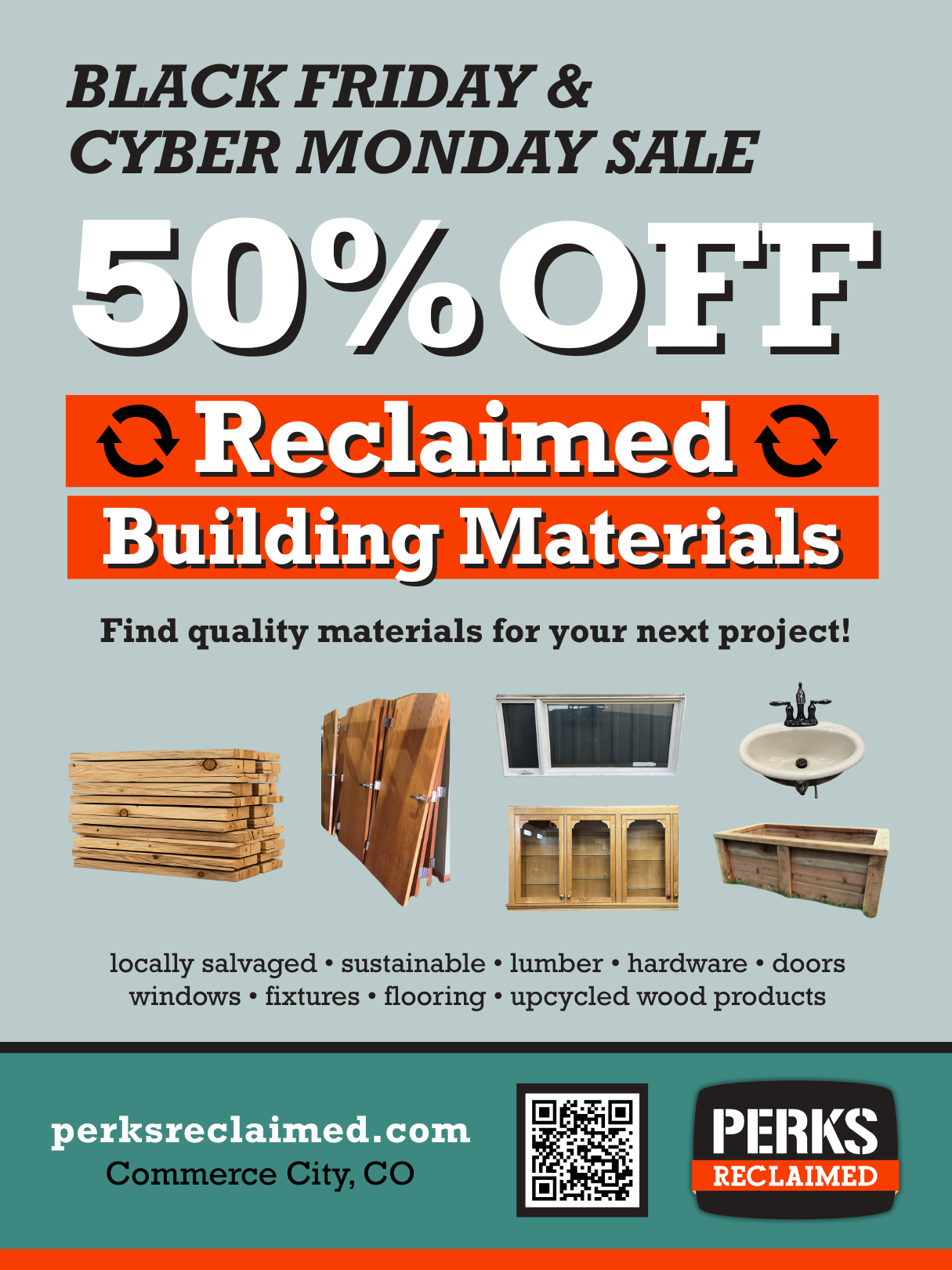 It's our biggest sale of the year! All reclaimed materials in our shop will be half off on Black Friday & Cyber Monday, in-store and online. See what we have in stock so you can stock up on materials for your next project.