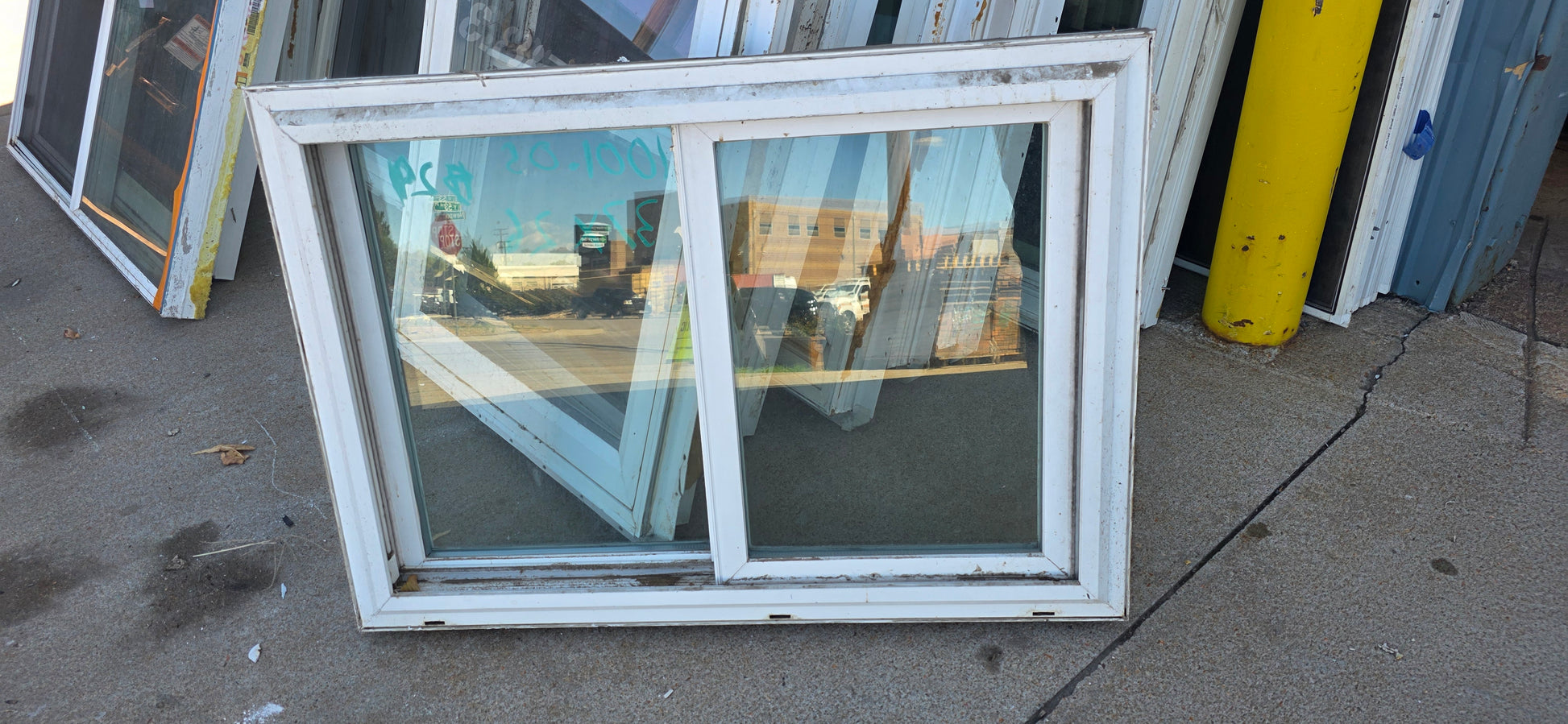 Salvaged double-paned window with clear insulated glass. White vinyl frame offers durability and low maintenance. A reliable option for replacement windows, remodels, or repurposed projects like greenhouses or workshops.