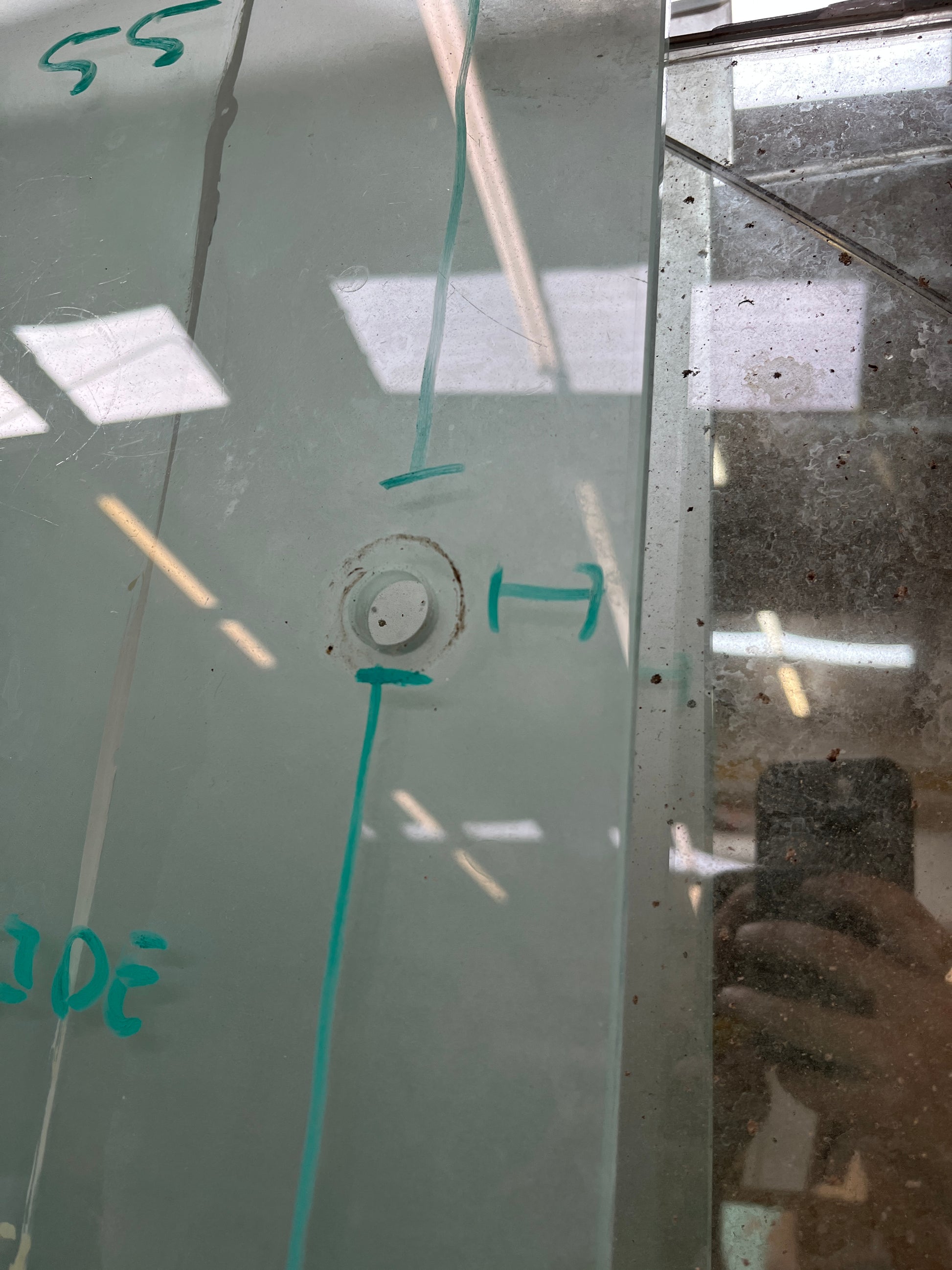 One tall frosted glass panel, rectangular, with pre-drilled mounting hole.