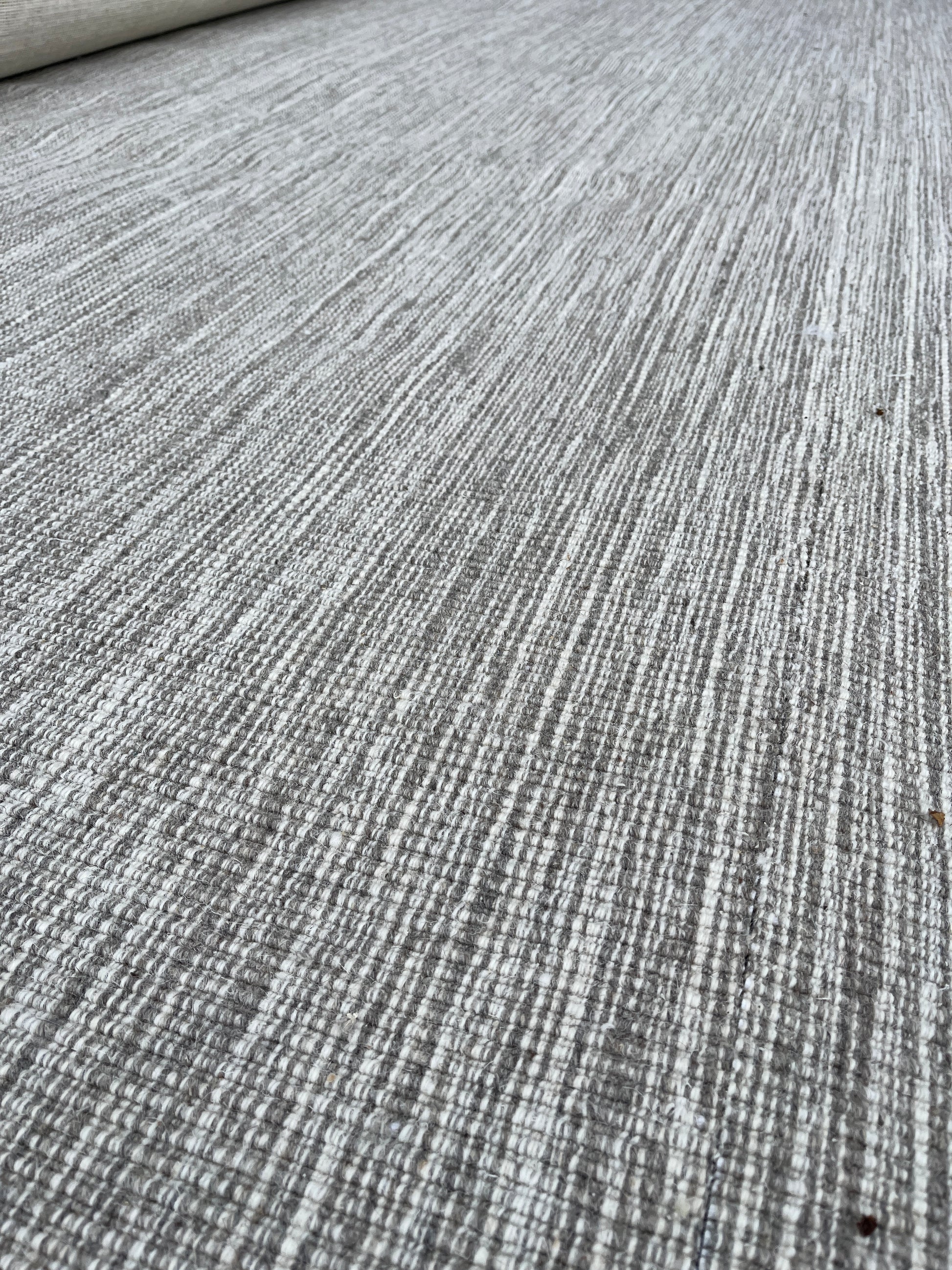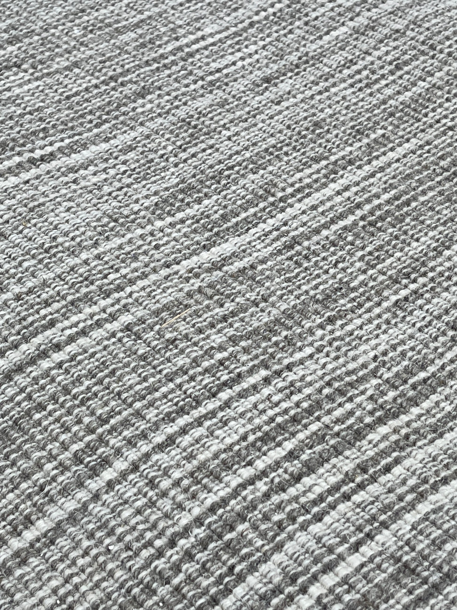Modern woven gray area rug (or carpet remnant) featuring a neutral two-tone weave in gray and white. The subtle linear texture gives it a natural, organic look that complements a wide range of interiors.