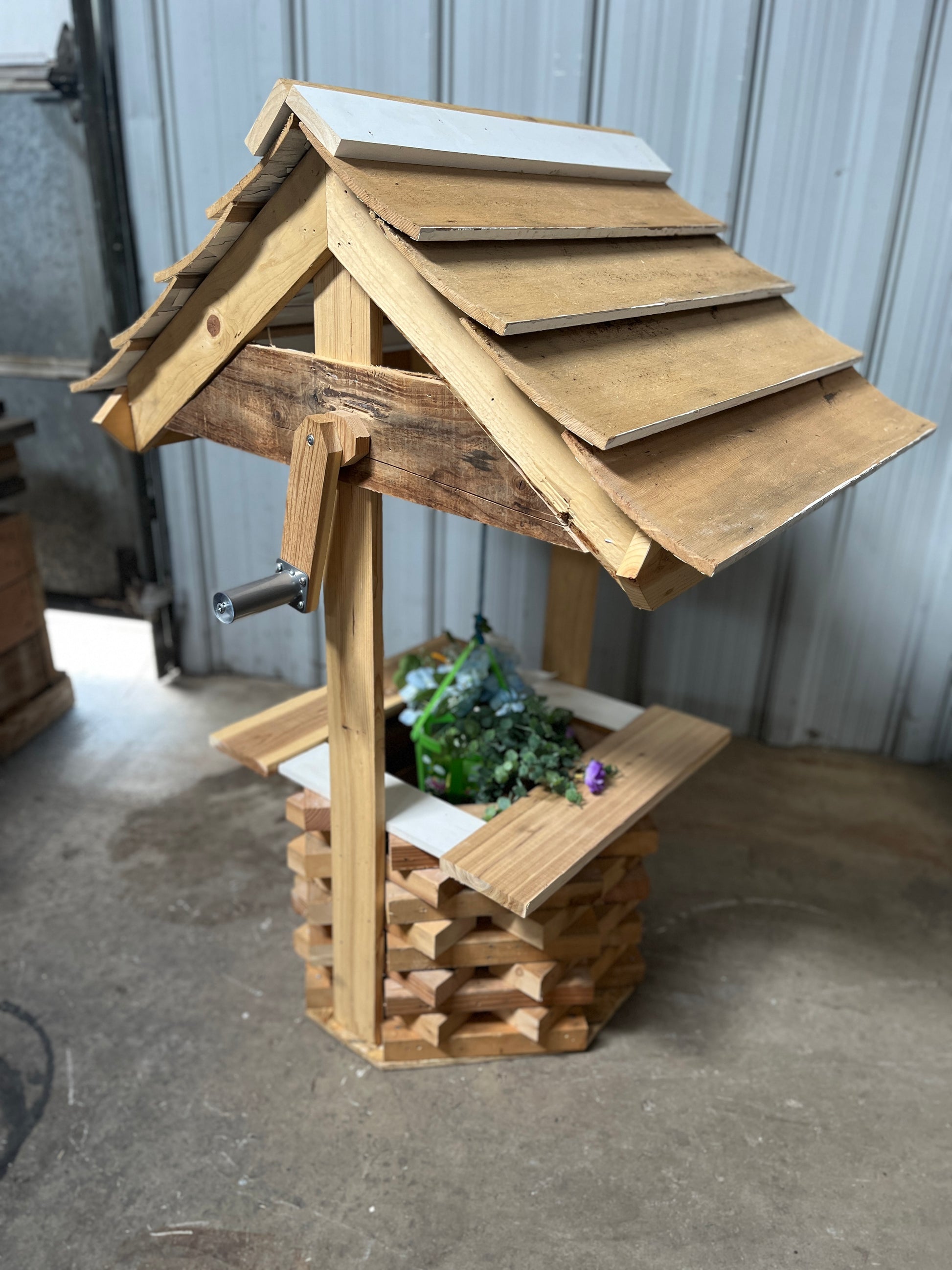 Handmade Wishing Well Planter made from Reclaimed Wood – Paintable Garden Decor