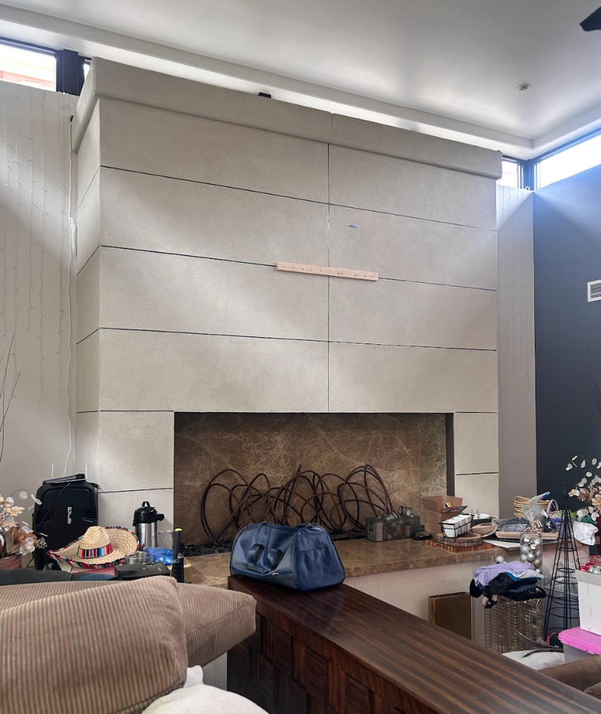 This one-of-a-kind metal fireplace sculpture features an abstract arrangement of looping and twisted 1/2 inch square wrought iron. Originally installed in a custom Denver home, it adds striking visual interest to any hearth, mantle, or display space.